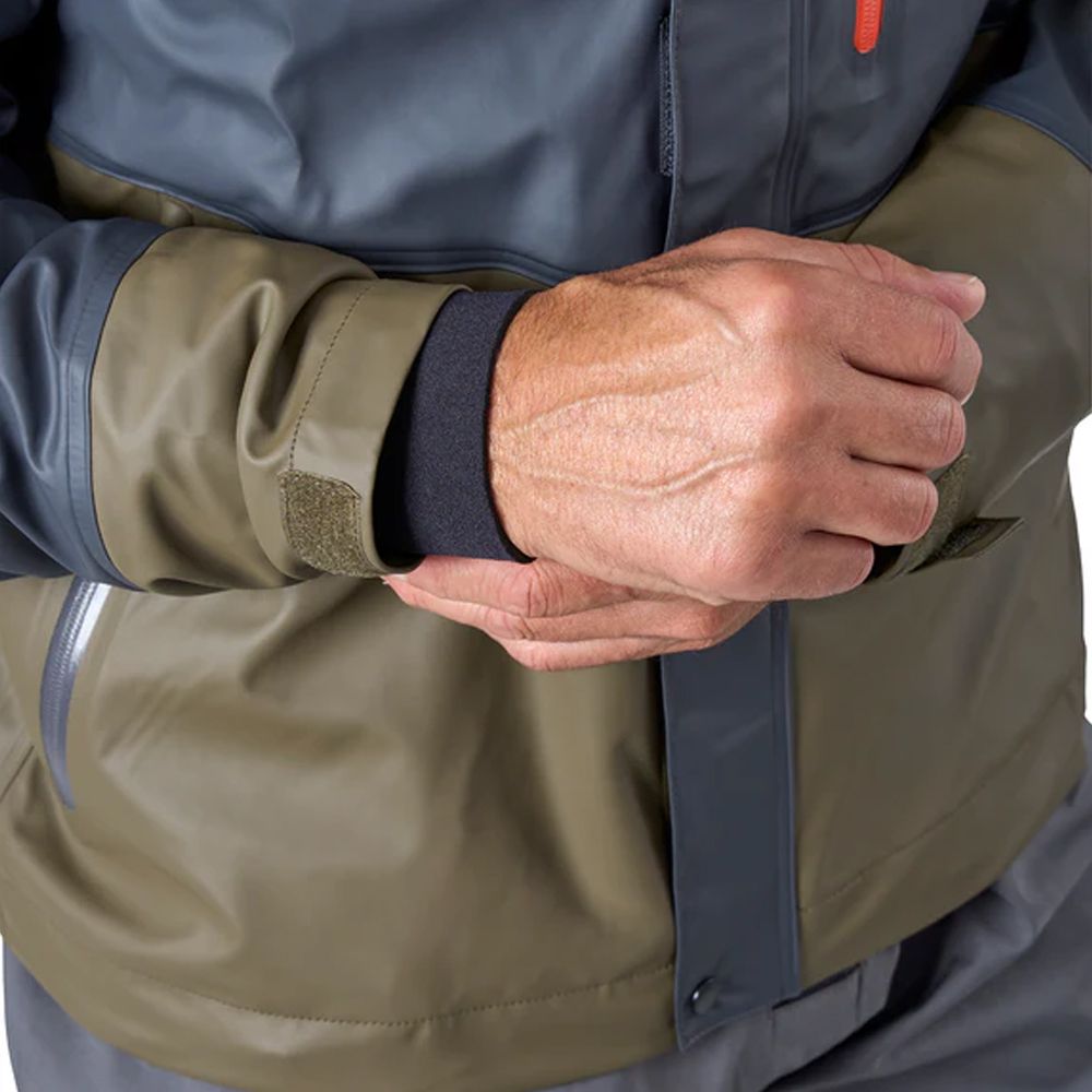 Professional Grade Coated 180gsm PU Sportfishing Jacket, perfect for sustained weather with coated shell that will not wet out and unique features including neoprene cuffs to keep sleeves watertight.