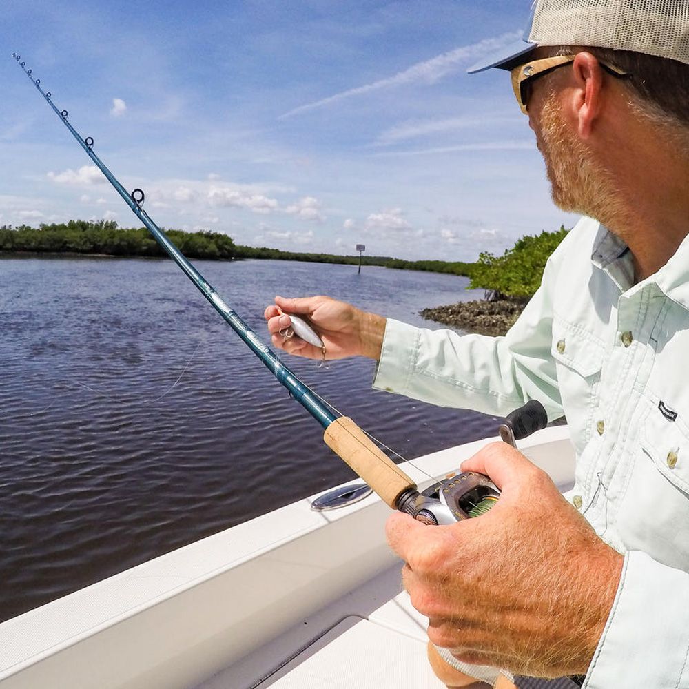 Discover the ultimate inshore fishing experience with this expansive range of superior rods. The Mojo Inshore Casting series features a SCIII carbon fiber blank, stainless steel guides with slim aluminum oxide rings, Fuji ECS reel seat, and a split-grip/premium-grade cork handle. Designed for durability and high performance, these rods are perfect for a variety of techniques on any coast.