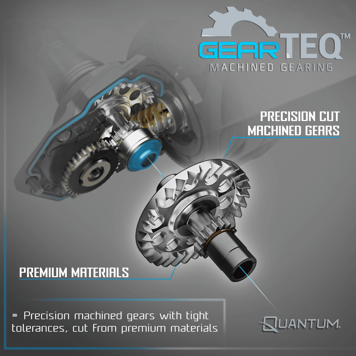- GEARTEQ™ precision-machined aluminum and brass gearing for strength and smooth power