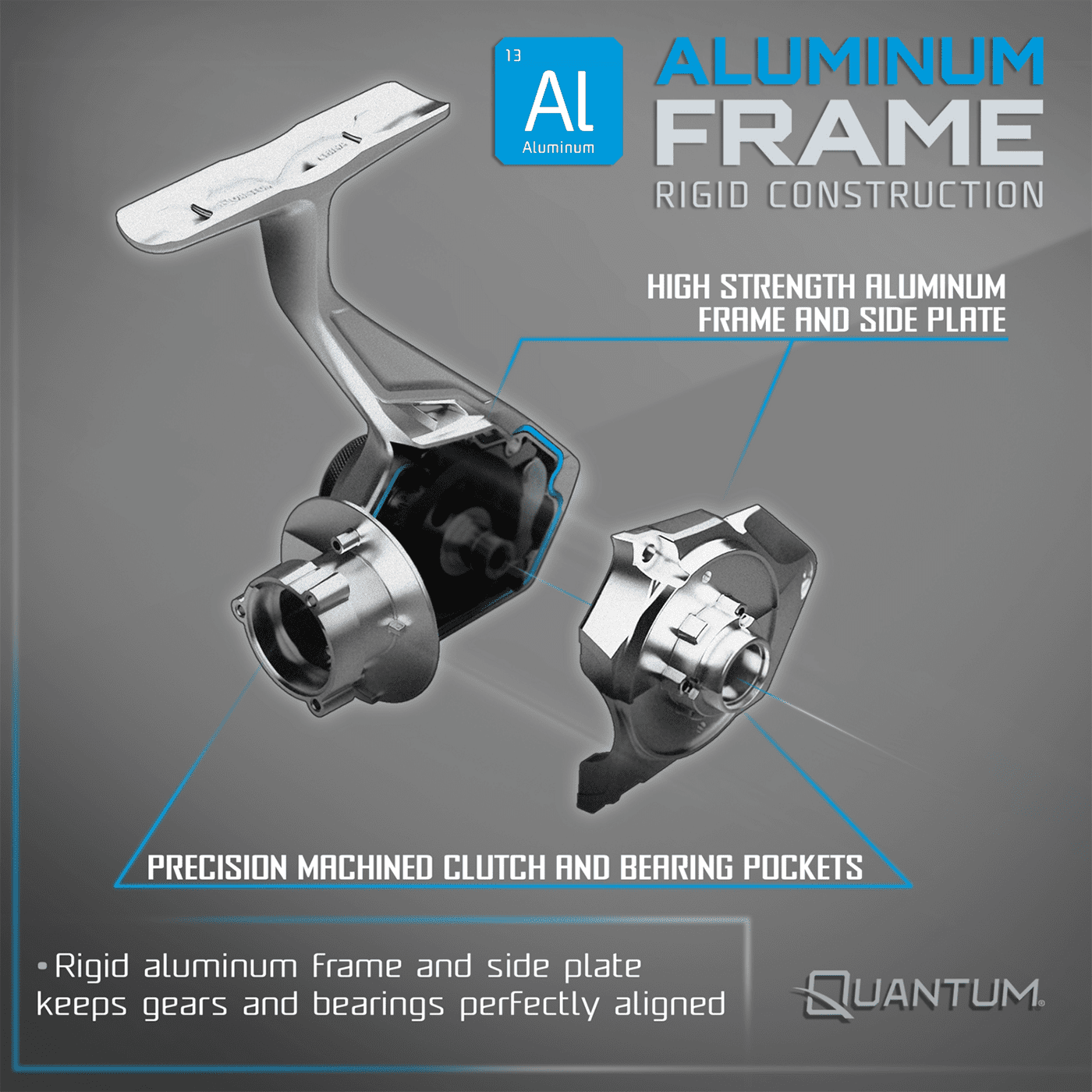 Innovation, strength, and precision engineering define the Quantum Benchmark™ Spinning Reel series. Designed to set a new standard in spinning reel performance, the Benchmark lineup is offered in six versatile sizes capable of handling everything from light trout applications to hard-charging tarpon. At the core of each reel is a rigid aluminum frame that keeps all gears, bearings, and seals perfectly aligned under heavy load, delivering consistent performance and long-term durability. The reel body and spool are fully sealed with SEALOQ™ 6 protection, actively defending internal components from water intrusion, salt, sand, and debris, making the Benchmark an excellent choice for both freshwater and saltwater environments.