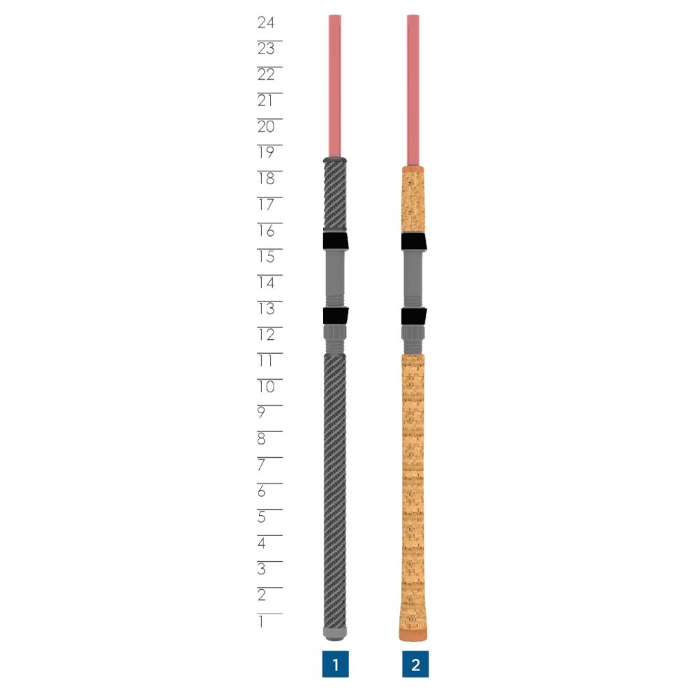 | ONFCS86MHF2 | 8'6" | Medium Heavy | Fast | 10-20 | 1/2-5 | 2 | 2, Full Cork | $240.00 | |
