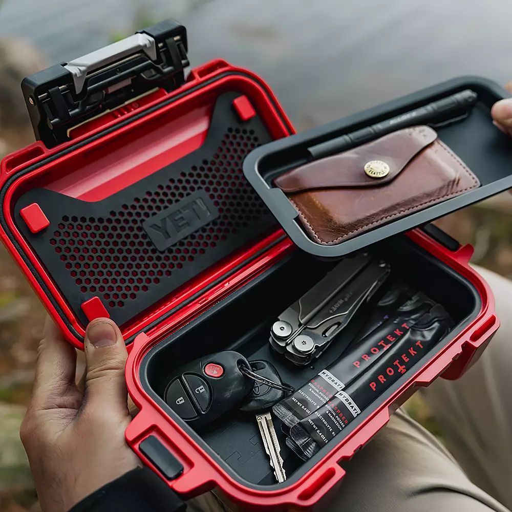 Meet the newest, most compact member of YETI nearly-indestructible Loadout GoBox family. Designed with a rigid and weather-resistant exterior, the Loadout GoBox 1 Gear Case houses the items you can't leave home without. The removable tray and Silicone PackAttic accommodate most phones and keep slimmer gear, such as car keys, cred...Read More